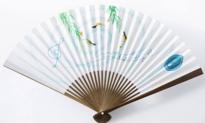 縁起がよいとされている鮎の図柄とONLYLOVERADIOのロゴ、 蓑輪単志の落款印が入っているオリジナル扇子です。
